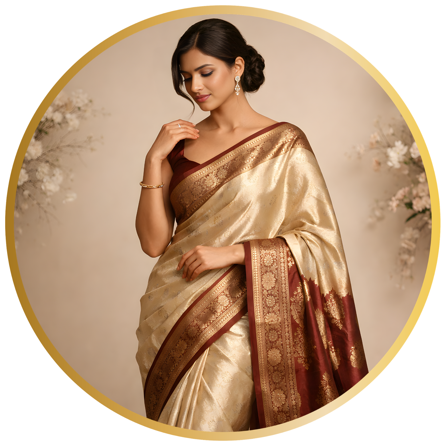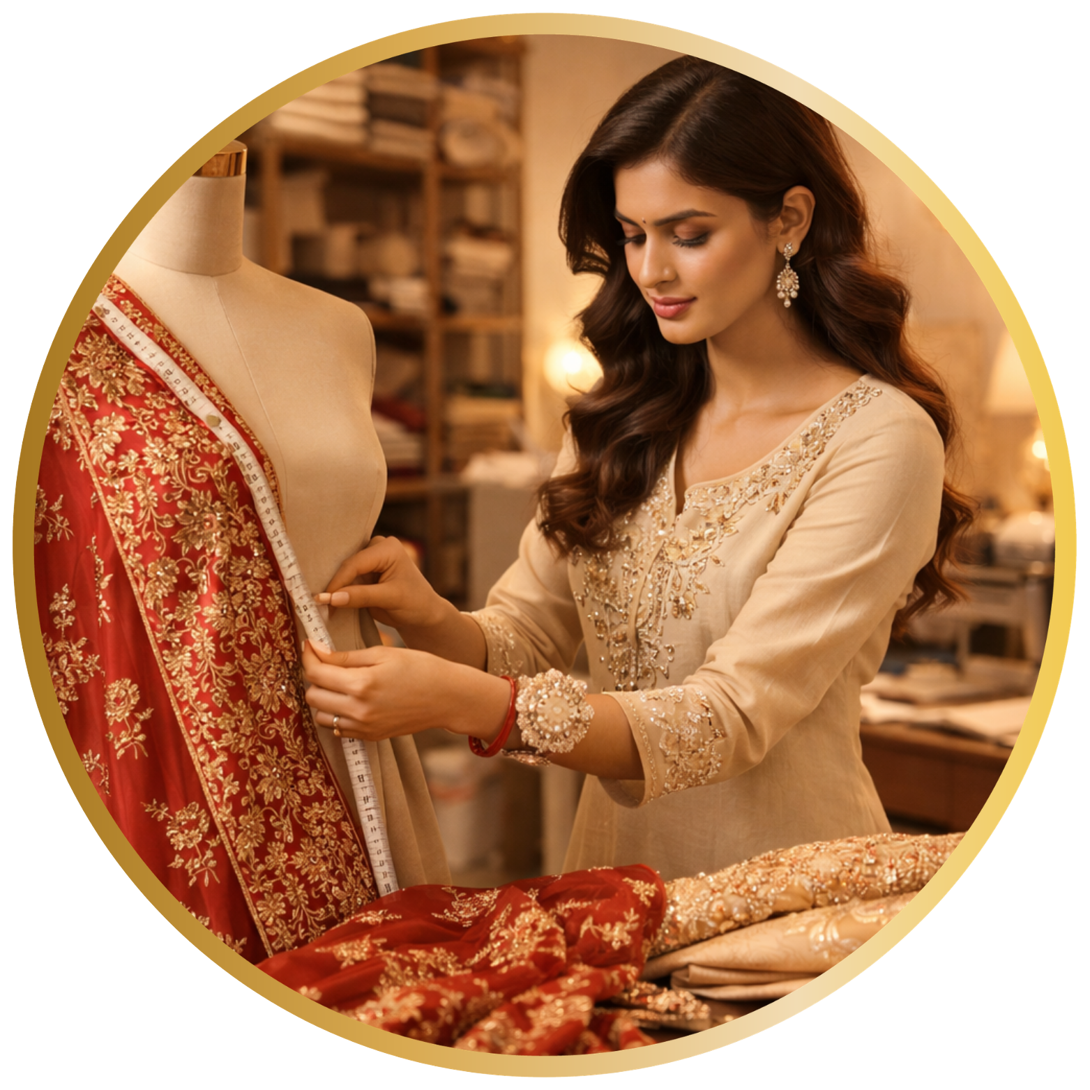 We believe that true elegance lies in the details. That is why we offer personalized customization services from blouse stitching to made-to-measure creations ensuring each outfit is tailored to your style and perfect fit.