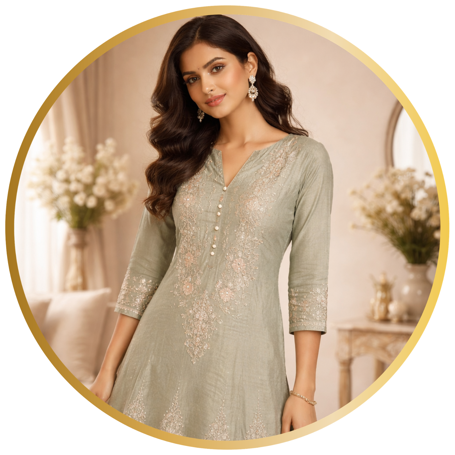 From graceful sarees and statement lehengas to refined salwar sets and contemporary kurtis, every piece in our collection is thoughtfully curated to celebrate femininity, culture, and individuality.