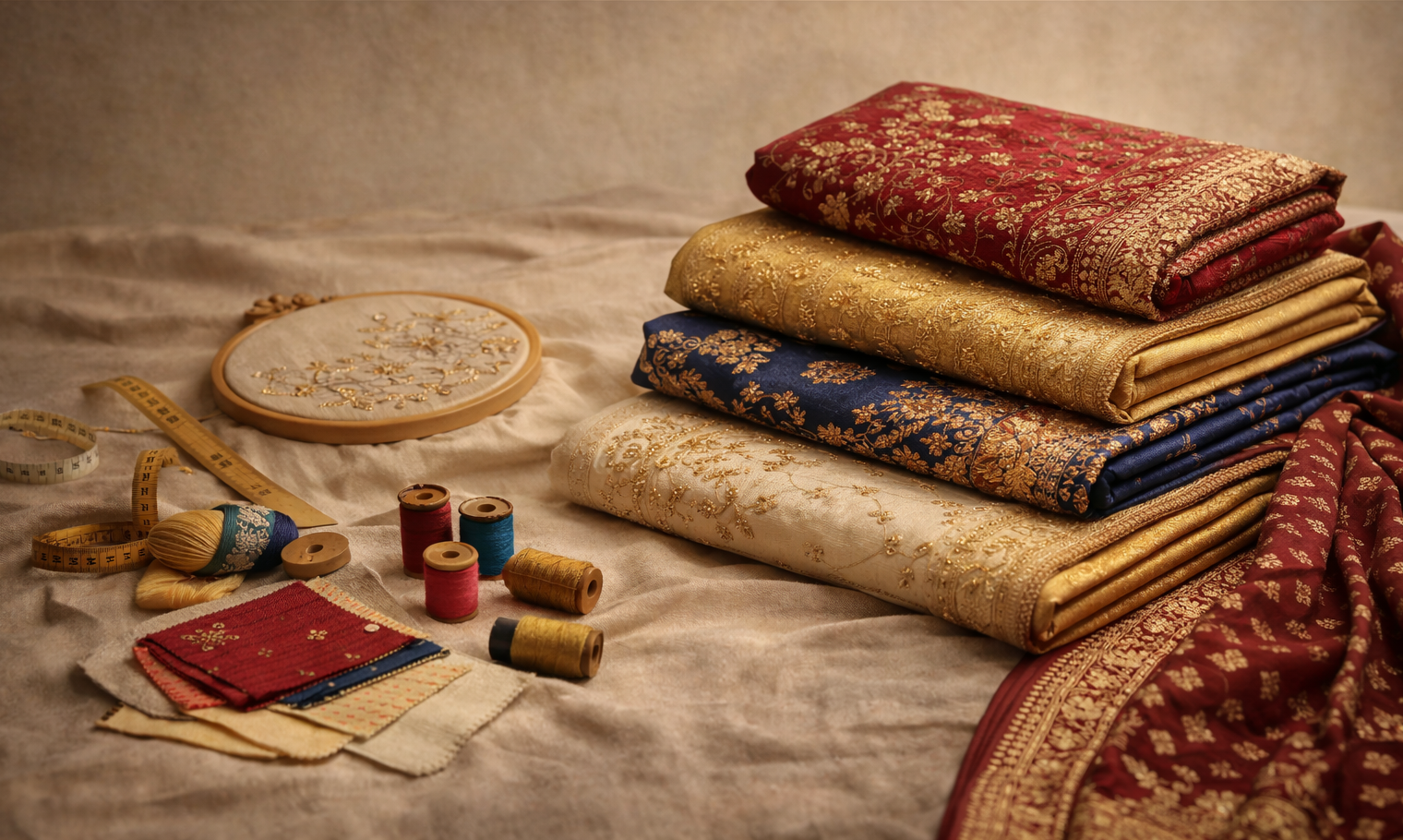 We believe that true elegance lies in the details. That is why we offer personalized customization services from blouse stitching to made-to-measure creations ensuring each outfit is tailored to your style and perfect fit.